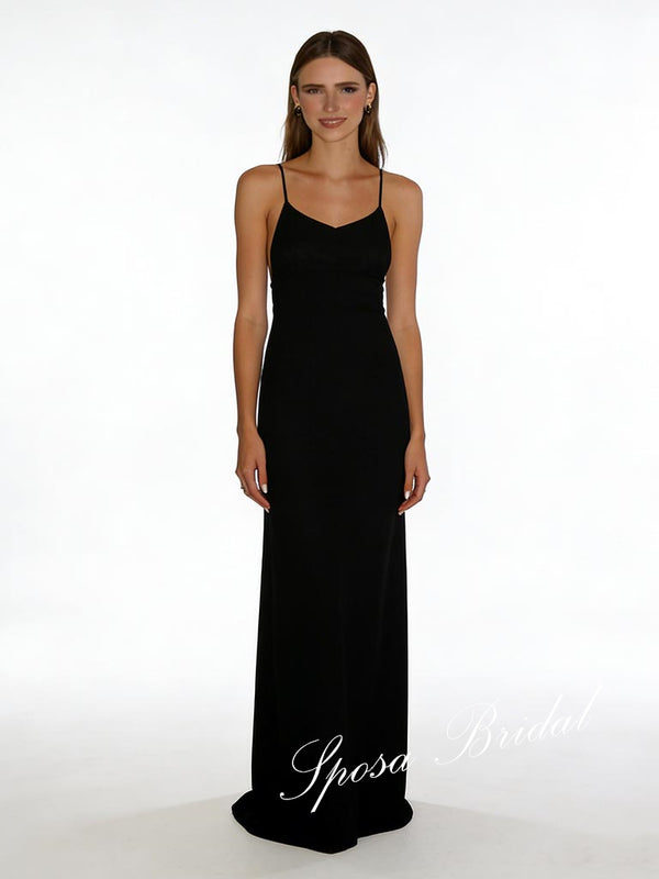 Sexy Black Jersey Spaghetti Straps Sleeveless Open Back Mermaid Prom D