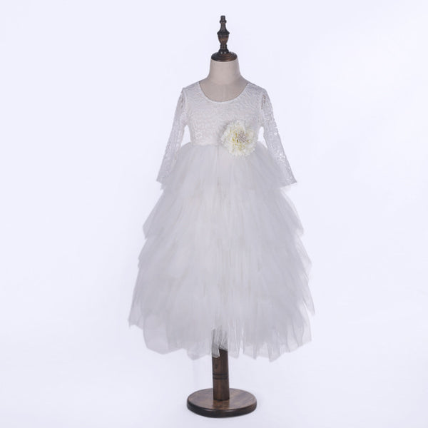 Cute Wedding Guest Dress Long Sleeves Tulle And Lace Unique A-Line Flower Girl Dresses, FG1467