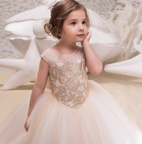 Little Wedding Guest Cap Sleeves Tulle Unique A-Line Flower Girl Dresses, FG1457