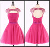 Sexy Open Back Hot Pink Beaded Cute homecoming prom dresses, CM0014