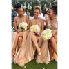 Modest Elegant Popular Affordable Appliques Long Tulle Bridesmaid Dresses with Slit and beads, WG520