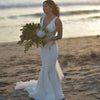 Deep V-Neck Sweep Train Mermaid Beach Long Sexy Popular Wedding Dresses with Lace, WD0205