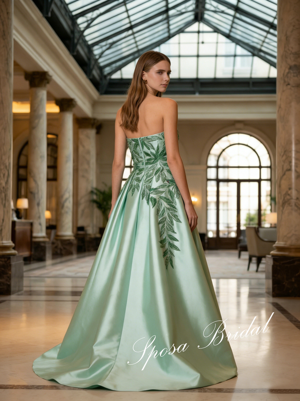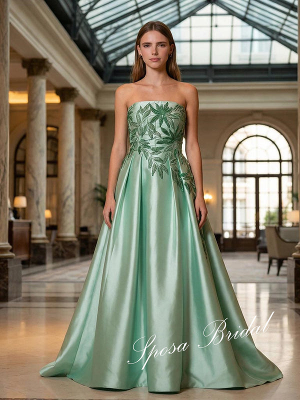 Elegant Satin Sweetheart Sleeveless Appliques A-Line Prom Dress, PD4061