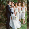 Full Lace Cheap Mermaid Sexy Off Shoulder Short Ivory Lace Bridesmaid Dress with Slit , WG283