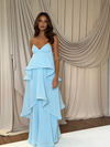 Light Blue Halter Layered Ruffle A-Line Maxi Dress - Flowy Chiffon Summer Formal Gown, PD4164